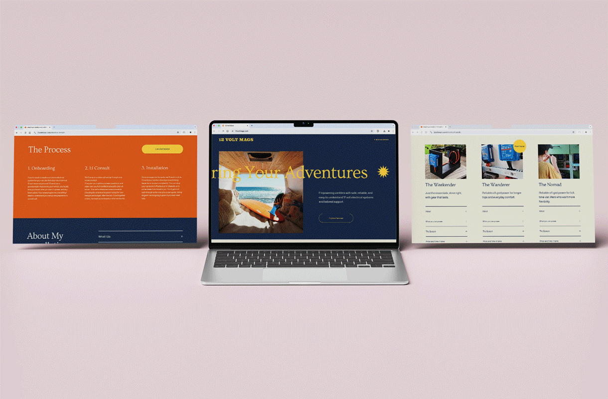 For the branding, the goal was to create something that stood apart from the typical masculine electrical aesthetic – something bold, fun, and instantly relatable to women in the vanlife community.